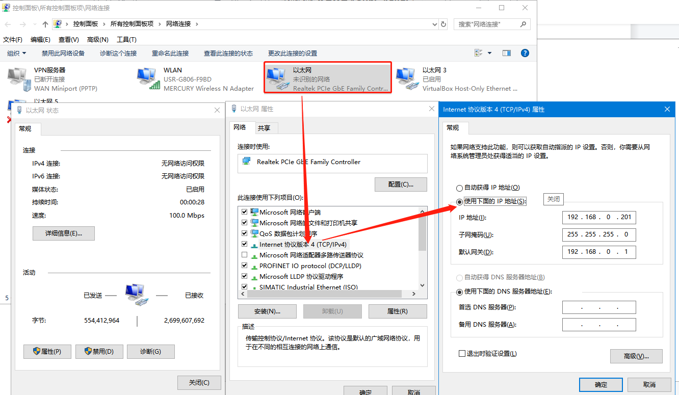 11)电脑本地连接,IP设置和N540 IP同网段,N540默认IP是192.168.0.7,网关192.168.0.1,电脑本地连接IPv4设置静态IP,192.168.0.201,子网掩码255.255.255.0,网关192.168.0.1。