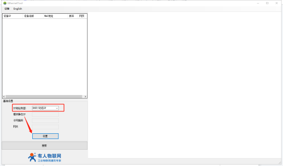 将IP地址获取方式从静态 IP改为DHCP,保存设置,单击搜索,找到设备之后,单击产品名称信息弹出输入用户名admin和密码admin,点击确定。在右上角点击中英文切换