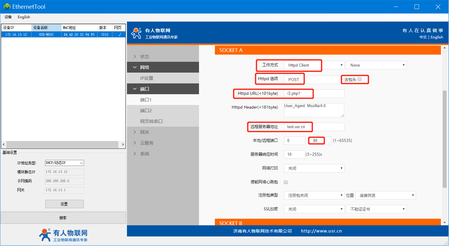 注意:上述参数是用我司的http测试服务器,如果客户接自己的http服务器,需要根据实际情况修改参数