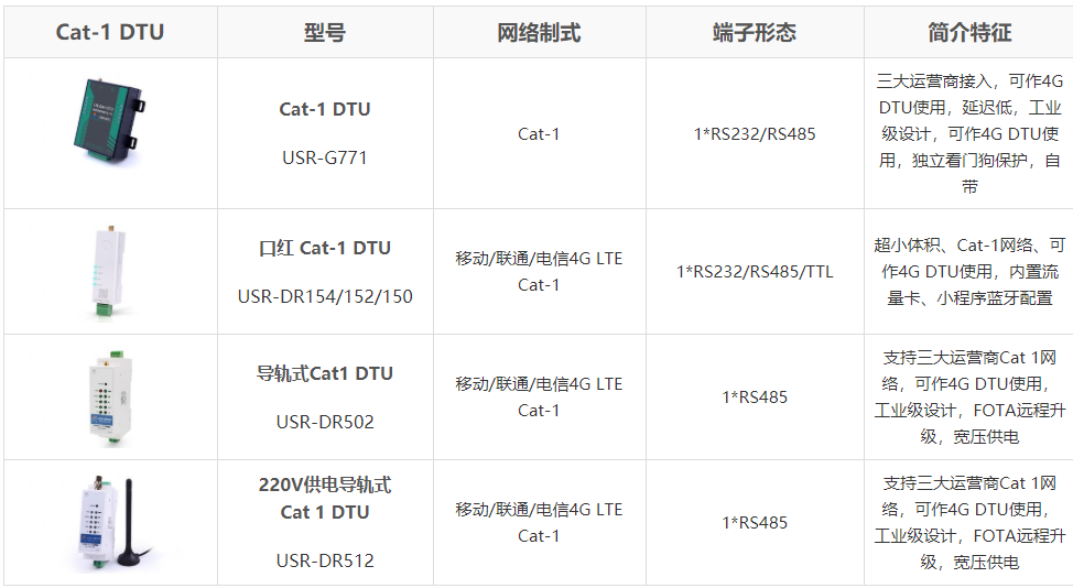 CAT1设备系列产品资料:https://www.usr.cn/Product/cat-83.html