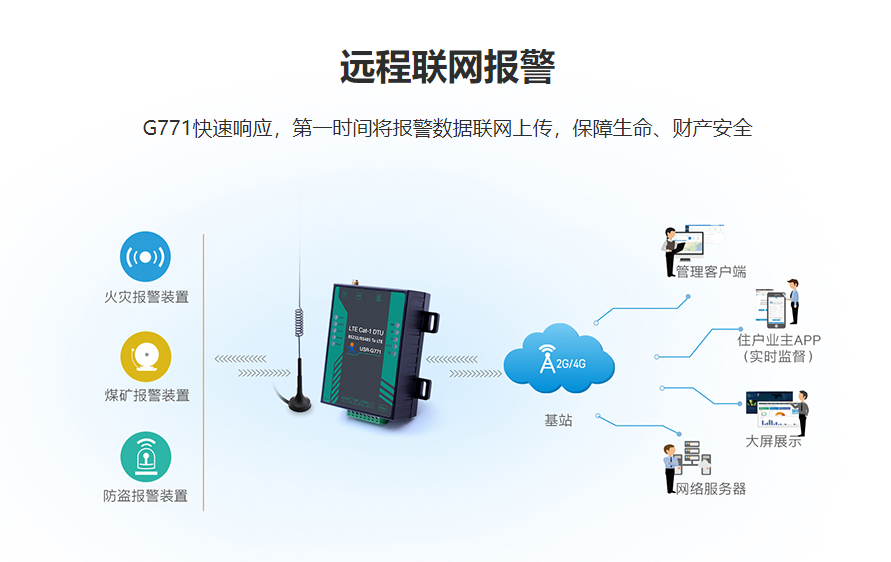 G771快速响应,第一时间将报警数据联网上传,保障生命、财产安全