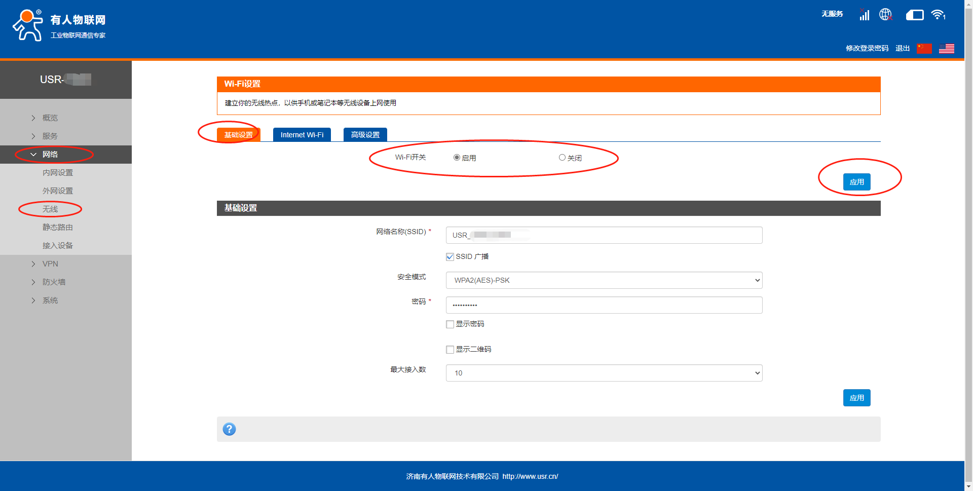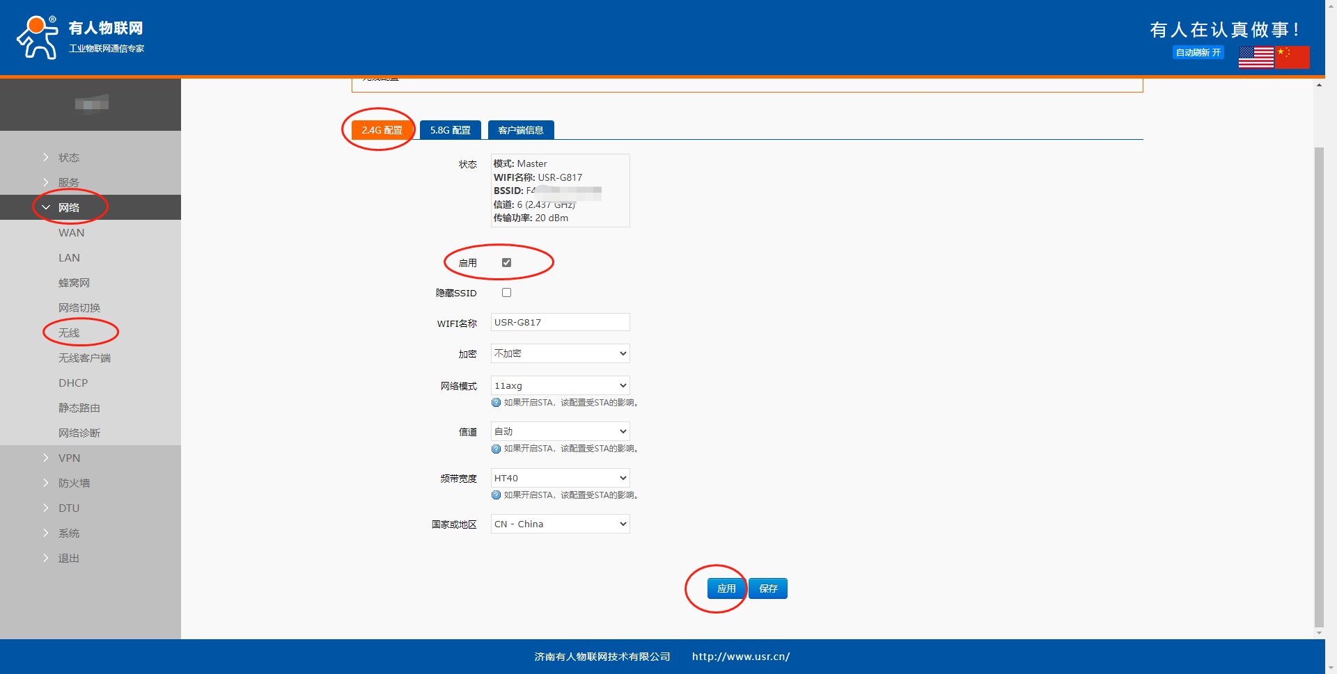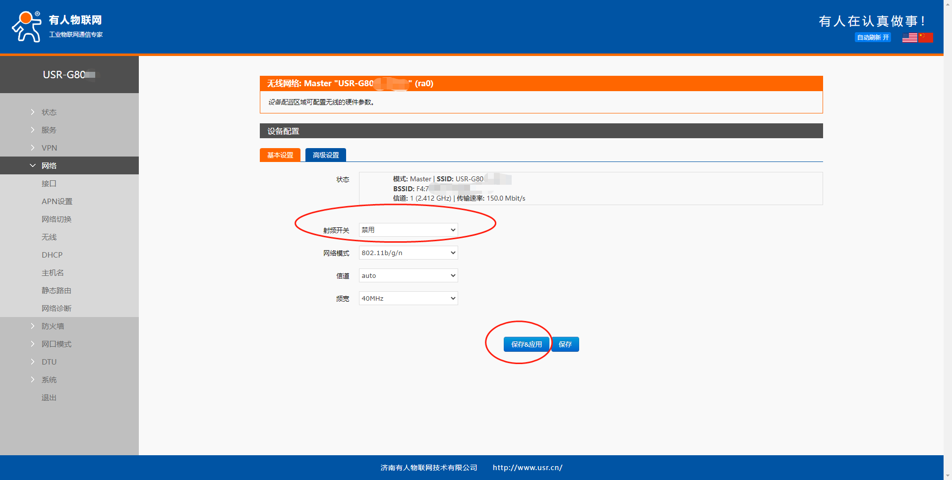 G805(包括RM02、RM03)系列:网络--无线--基础设置--WIFI开关--应用