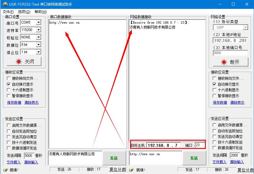 USR-N510-H7(二期)UDP通信测试案例