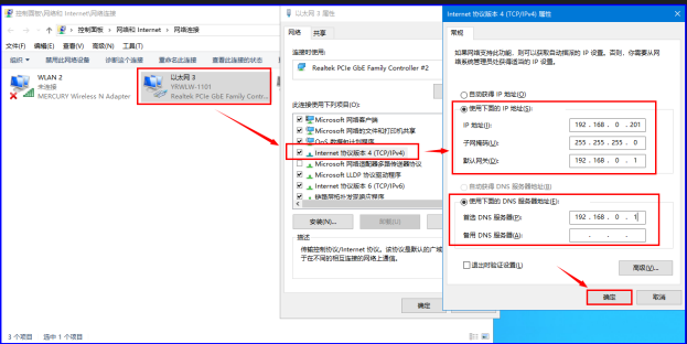 3、电脑:控制面板\网络和 Internet\网络连接,IP设置和N510 IP同网段,N510默认IP是192.168.0.7,网关192.168.0.1,电脑本地连接IPv4设置静态IP,192.168.0.201,子网掩码255.255.255.0,网关192.168.0.1。
