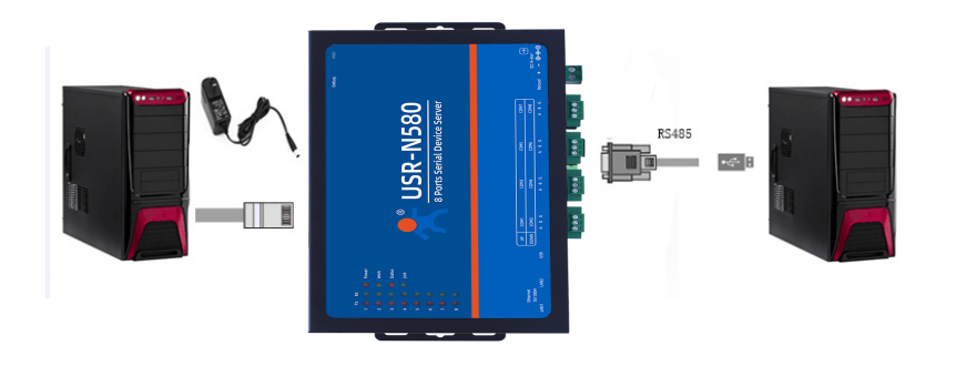USR-N580-H7产品,USB-RS485串口线接N580串口一,注意485接线线序,USB-RS485 A线接N580 串口一的A端子,USB-RS485 B线接N580 串口一的B端子,USB头插入电脑USB口。