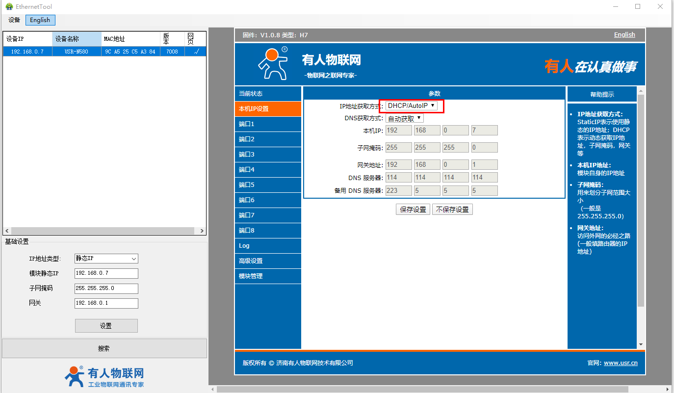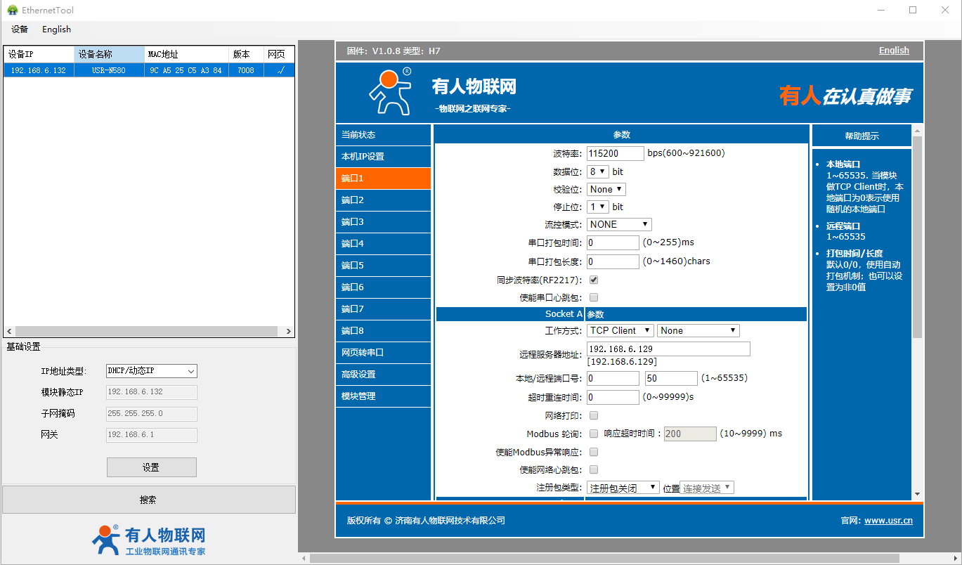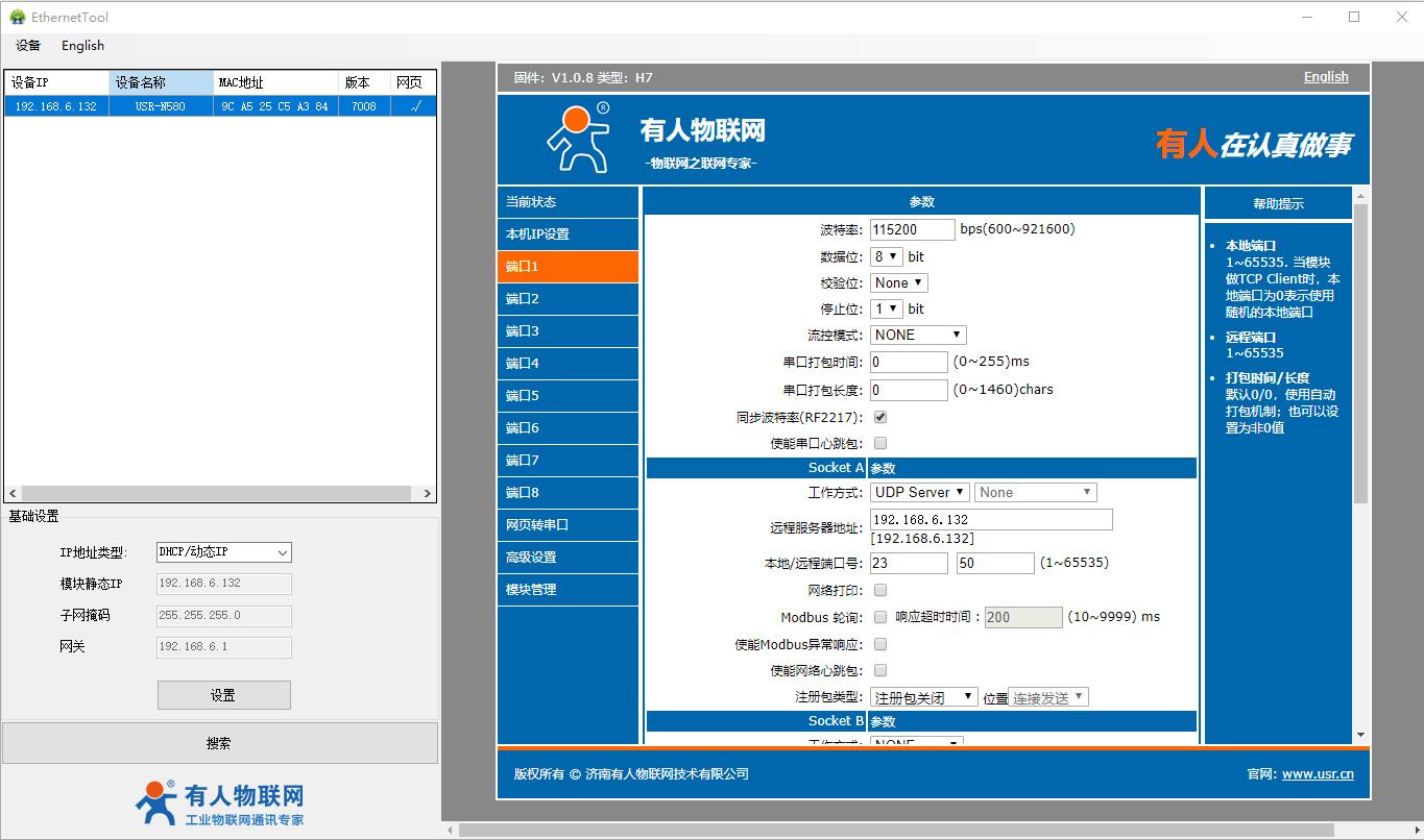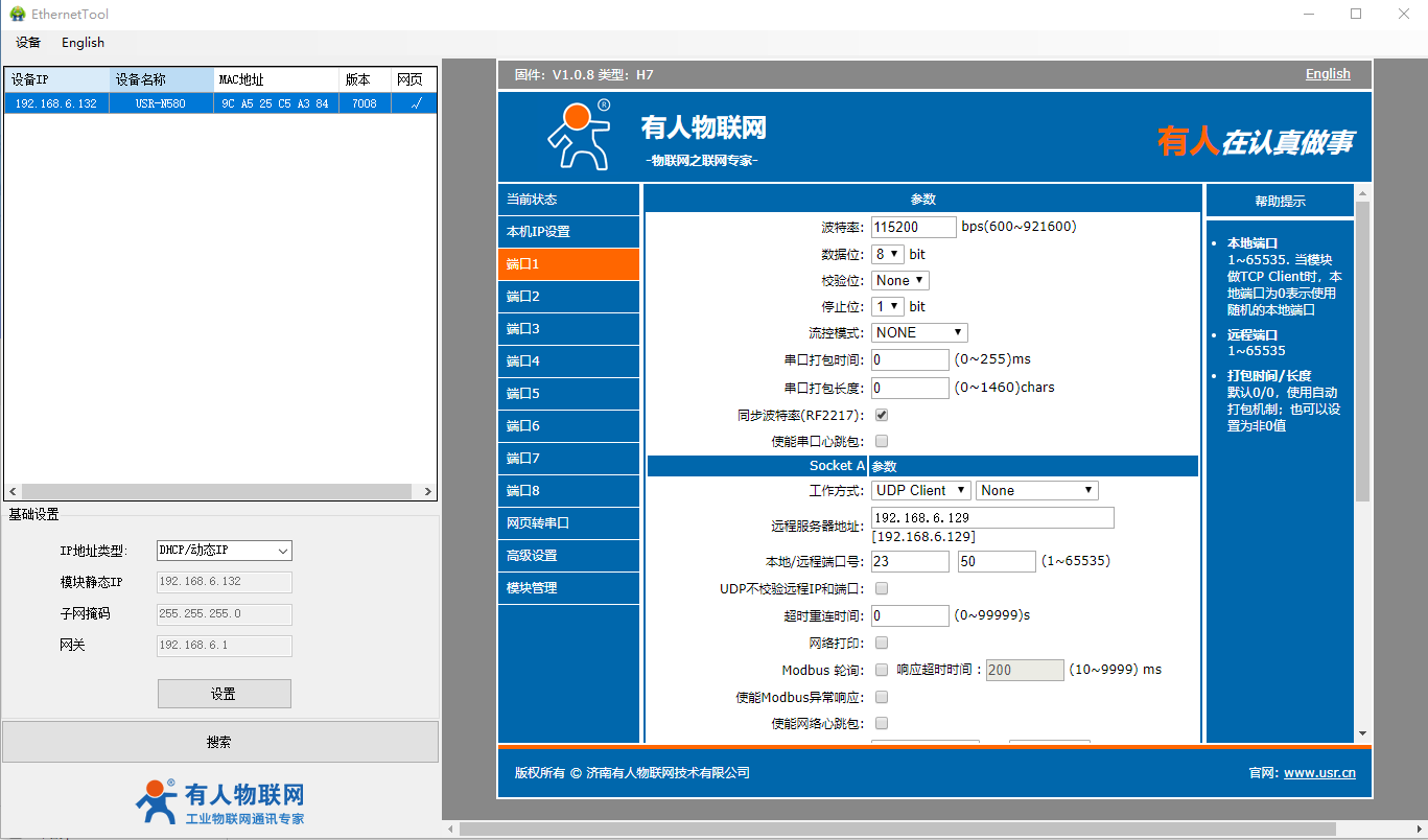 2、USR-N580-H7设置软件: