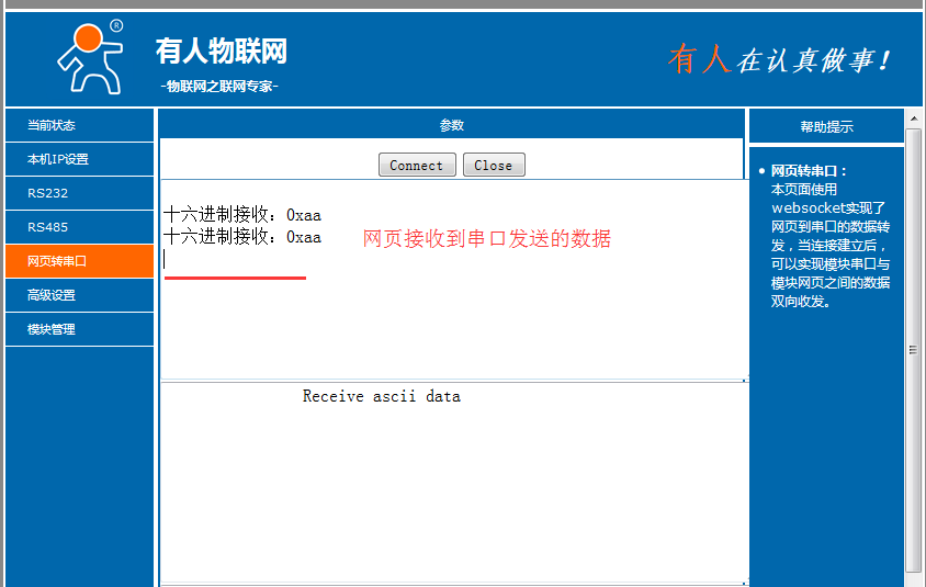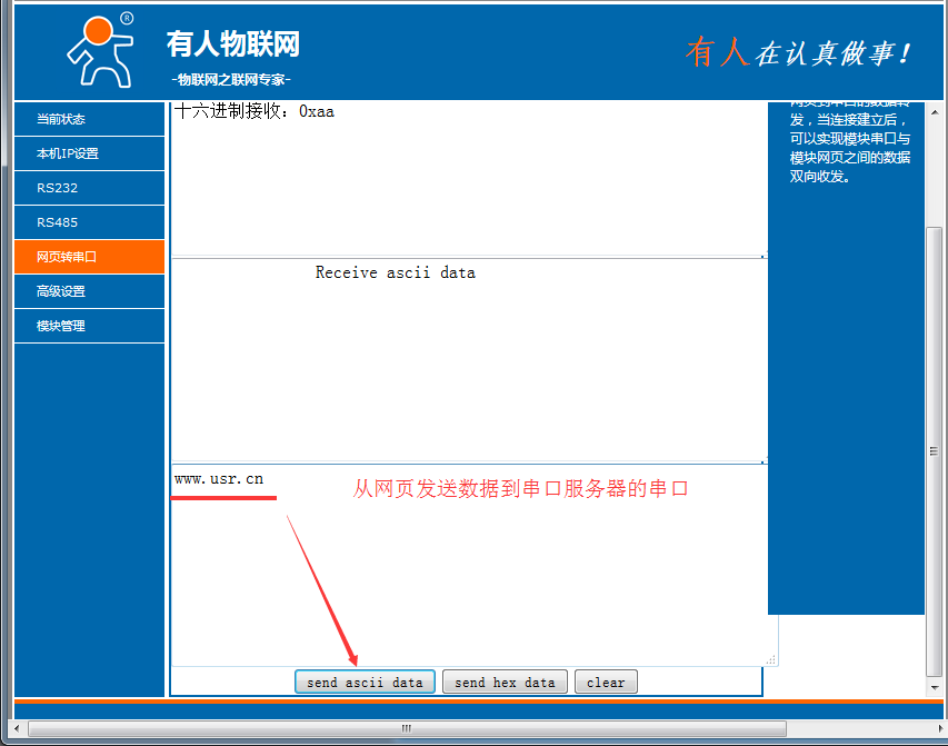 2:进入串口服务器的配置网页:192.168.0.7.用户名和密码都是admin。找到网页转串口