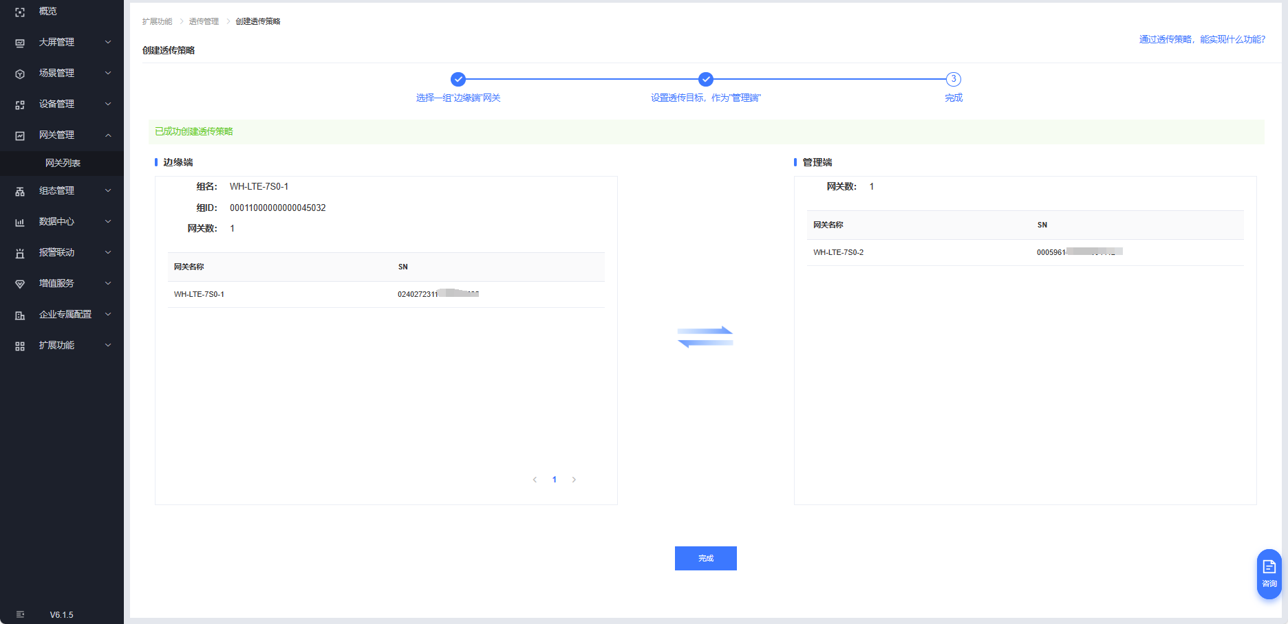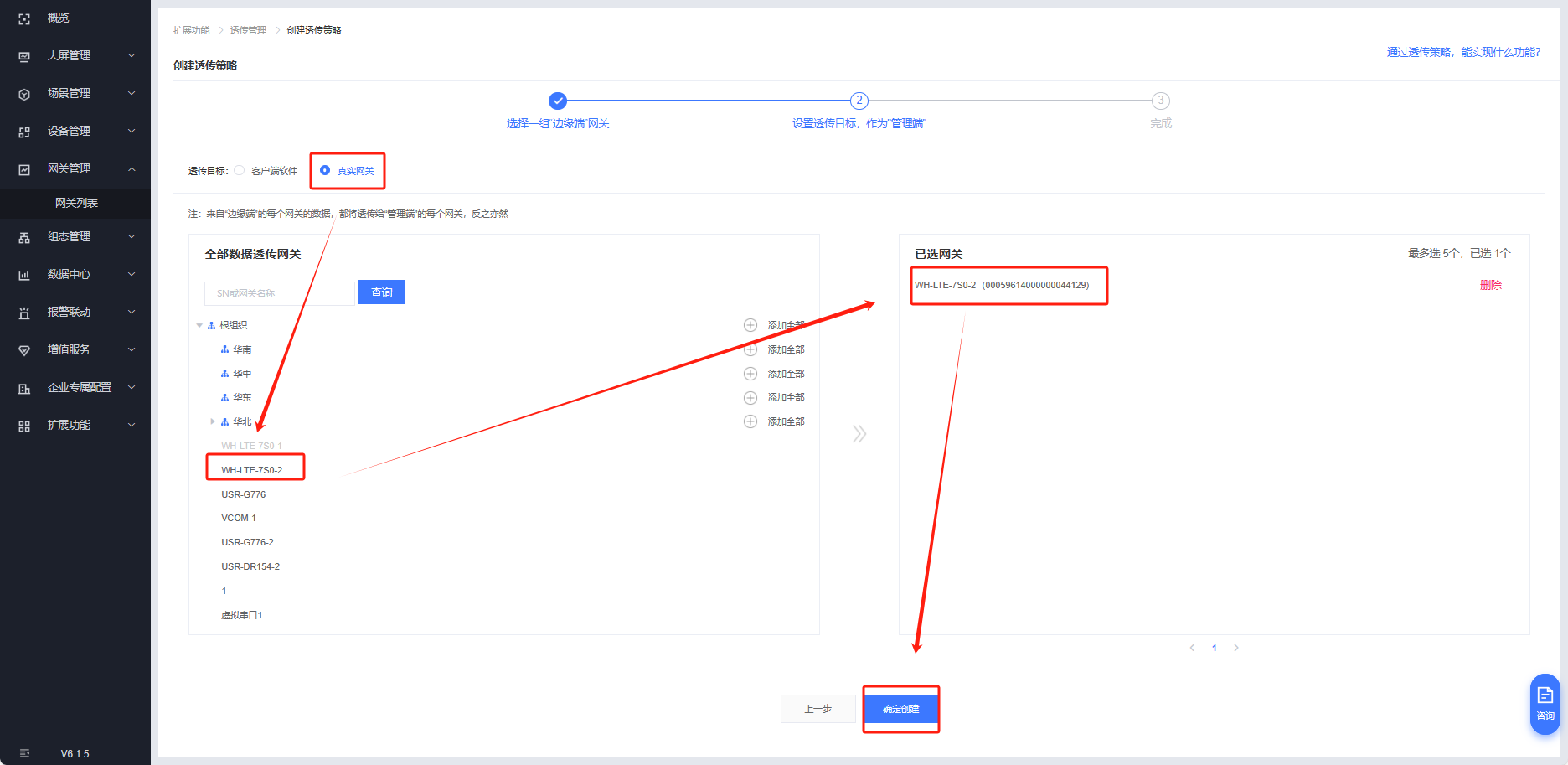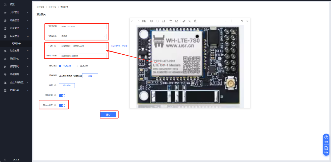 管理端选择真实网关,选则WH-LTE-7S0-2保存