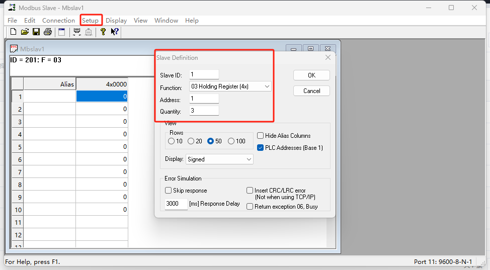 3、Modbus Slave软件配置