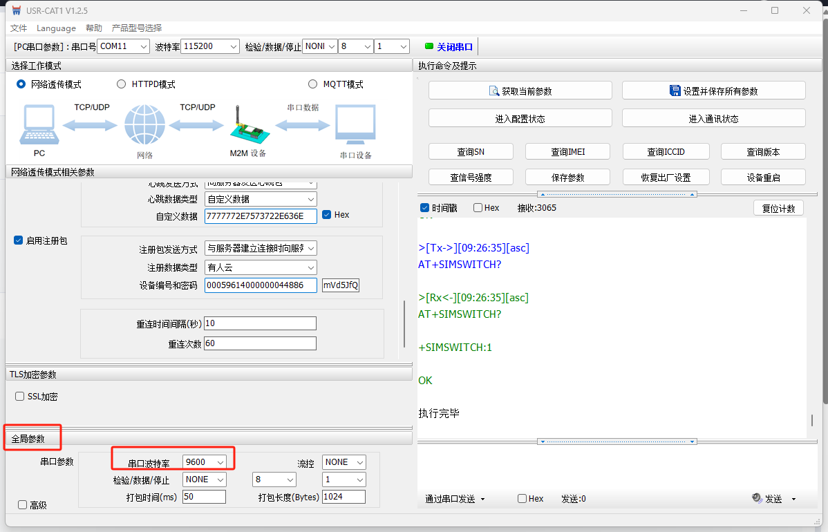 全局参数,串口波特率改为9600(可不改,根据用户从机实际情况确定,此例为修改串口参数示例)