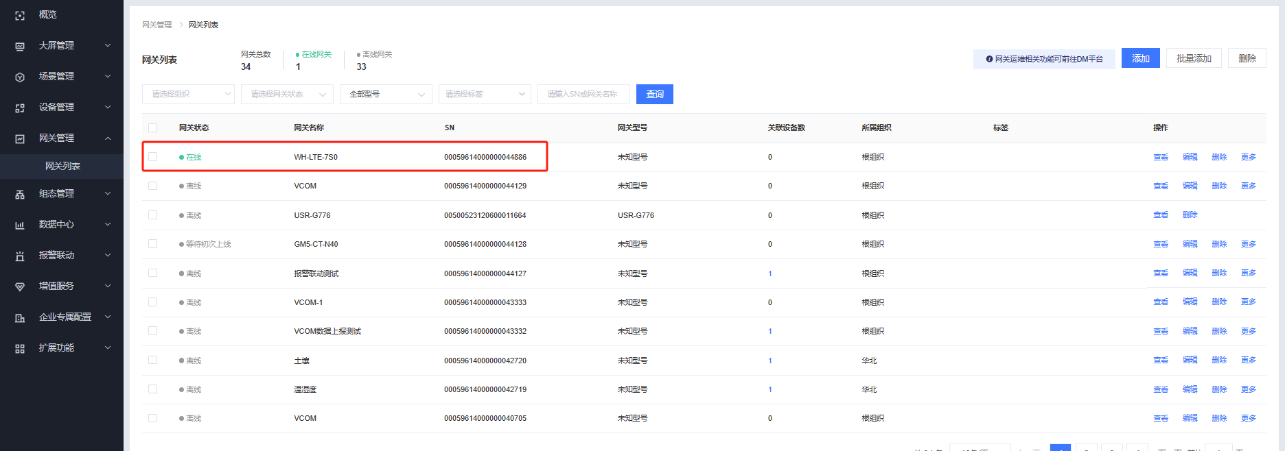 即可看到WH-LTE-7S0在有人云端显示在线。