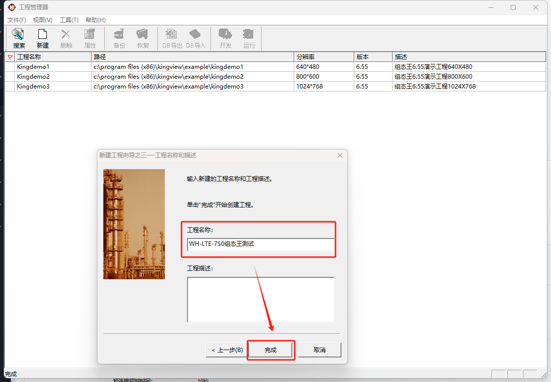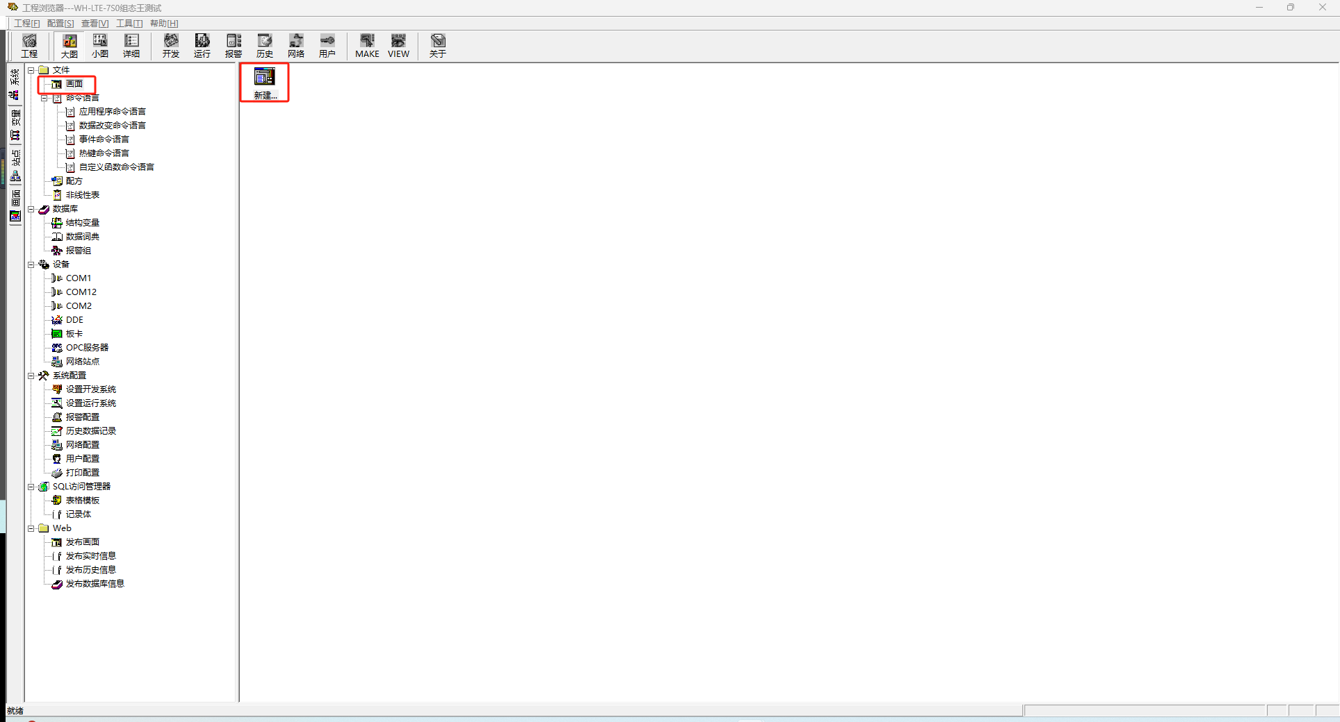 打开组态王软件,新建工程,工程命名为“WH-LTE-7S0组态王测试” 创建一个新工程。