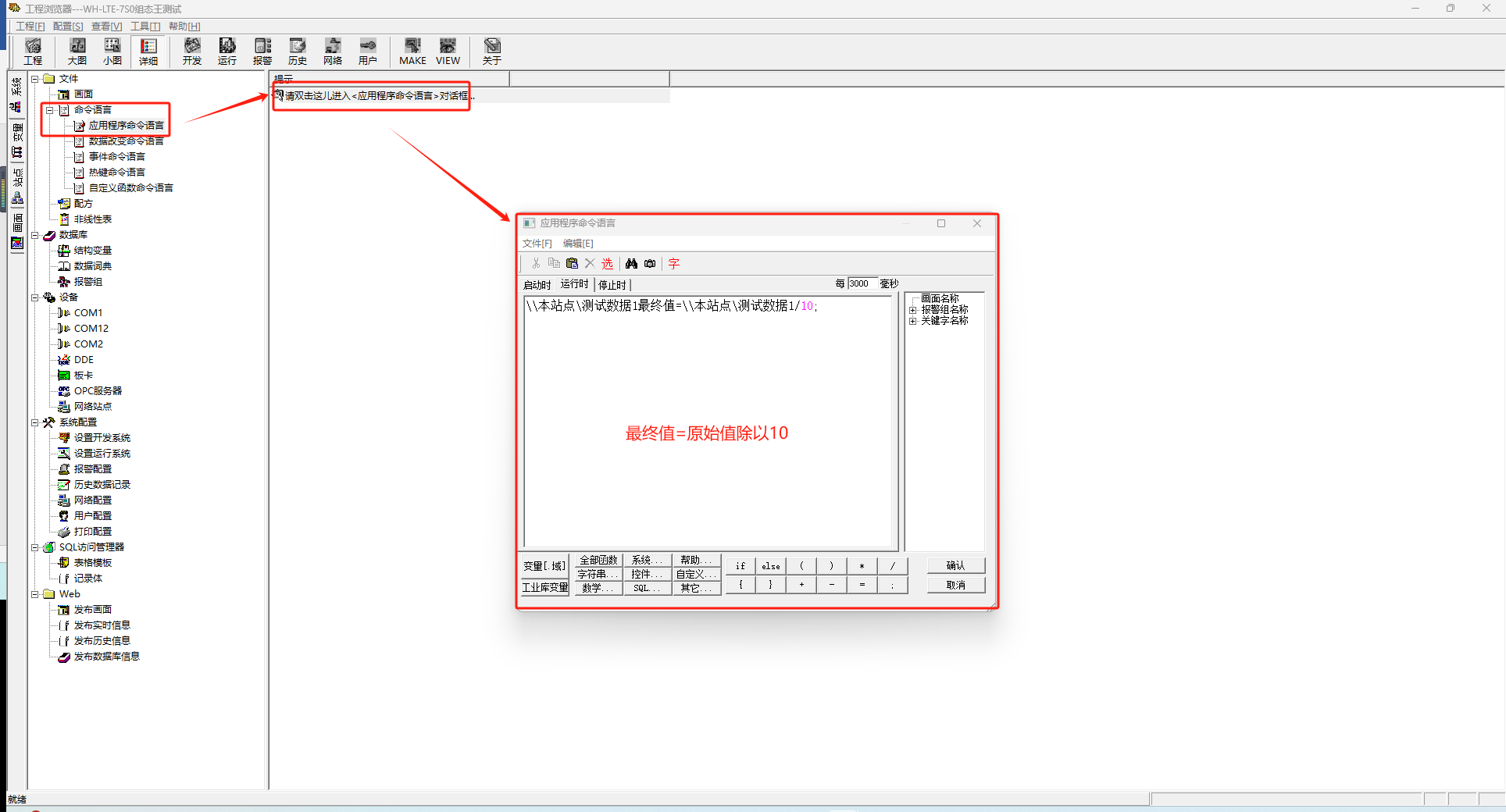 命令语言---应用程序命令语言,设置原始数据和最终数据之间的换算关系。