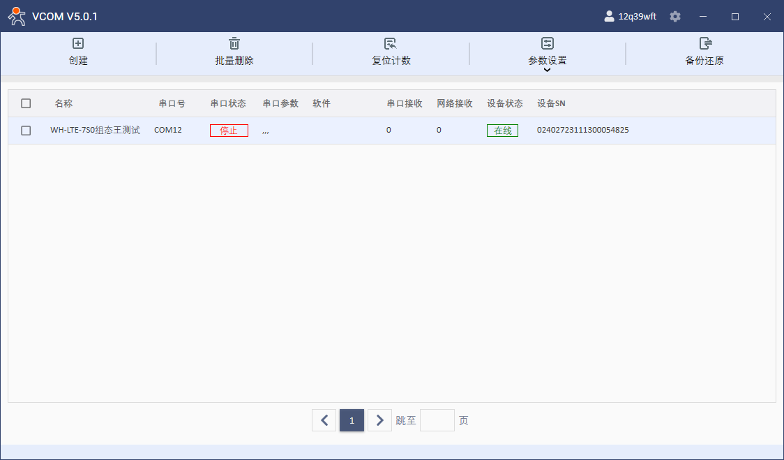 即可看到WH-LTE-7S0和虚拟串口COM12已经建立了透传关系。