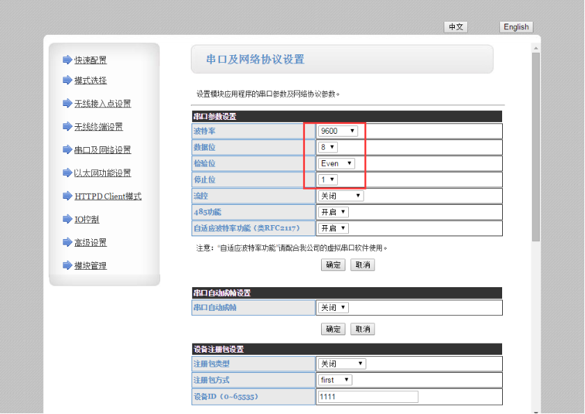 1:电脑直连WIFI串口服务器的无线或将WIFI串口服务器连接无线路由。登录设置网页,设置串口及网络设置的波特率为9600,校验数据位停止位:EVEN 8 1。这个参数要和PLC的参数一致。使用485的话要把485功能选择开启,点击确定,重启wifi串口服务器。