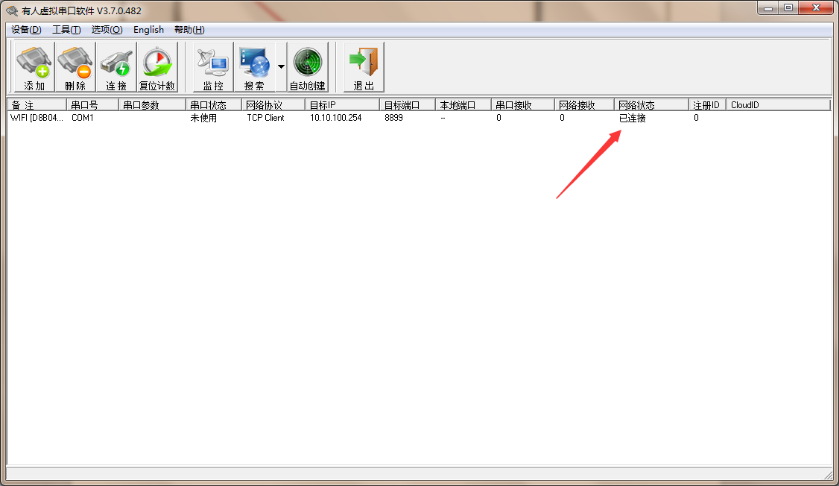 3:com1网络状态为已连接,说明网络通信OK。