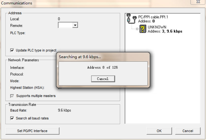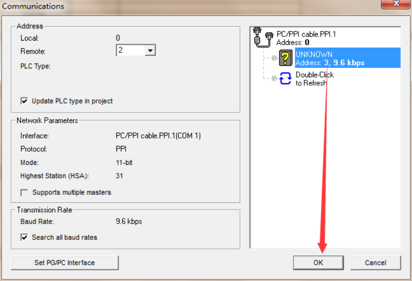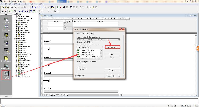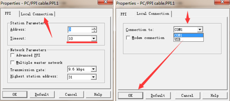 点击设置PG/PC接口,选择PC/PPI,点击属性,将超时时间设置大点,设置10S或者100S.然后点击本地连接选择刚才虚拟的串口com1.