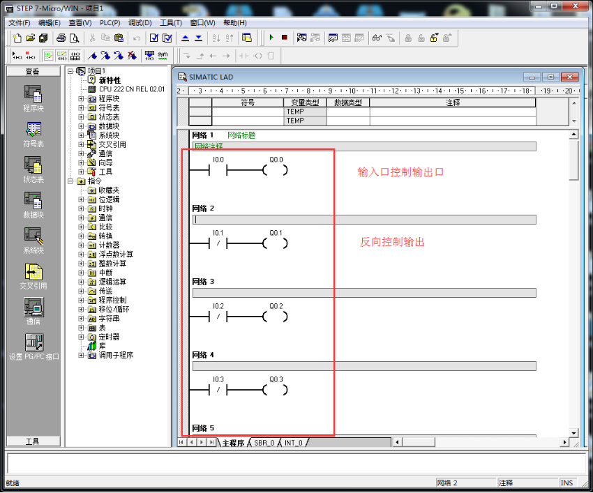 8:新建一个程序,写入程序,例子是一个:输入控制输出的一个程序。