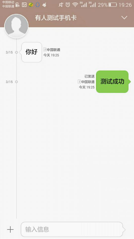 完成设置后,重启模块,待模块启动后,向模块的串口发送数据,模块会把数据发送至已设置的目 标手机上。然后再从手机回复信息,则会从模块的串口接收到信息。