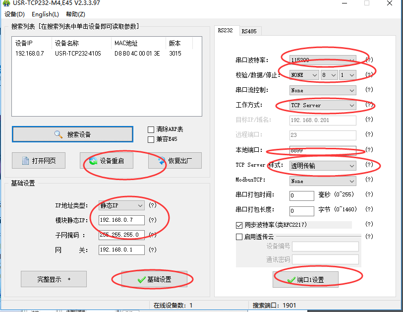 USR-TCP232-410S基本测试通信和使用方案(232串口)
