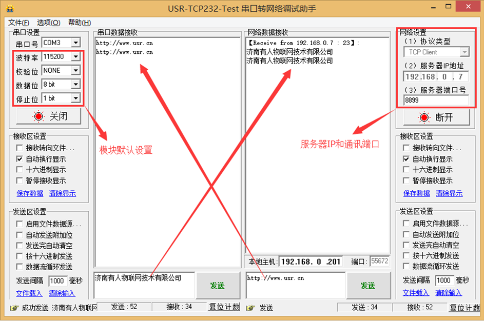 测试软件:USR_TCP232_Test: