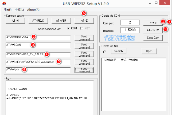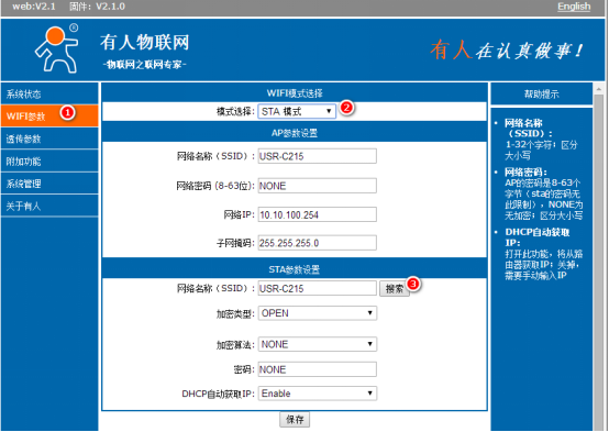 USR-C215 WIFI模块连接无线路由器进行局域网通信