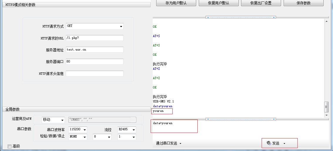USR-GM3 系列使用HTTP GET方式向网页服务器提交数据