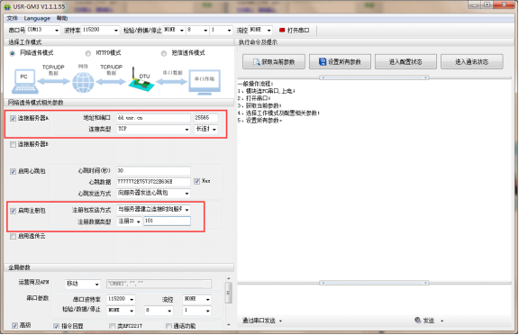 GPRS模块默认波特率为115200. 设备波特率要和串口设备设备波特率统一。GPRS-DTU连接串口设备。