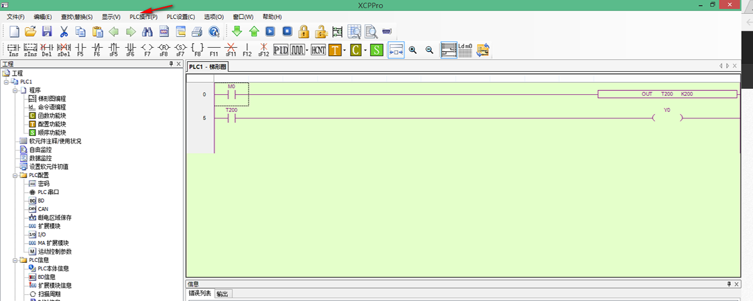 六、点击“PLC操作”-“上传用户程序”,上传成功会显示PLC梯形图。