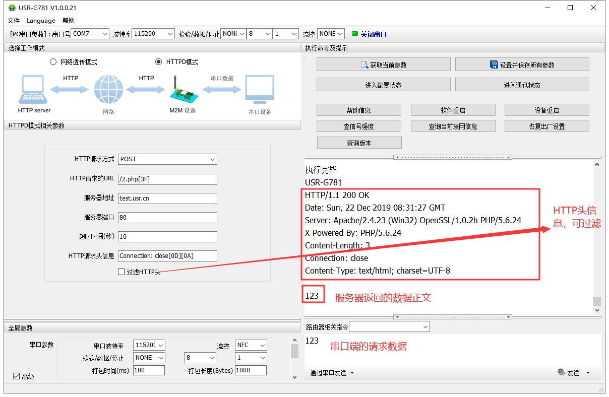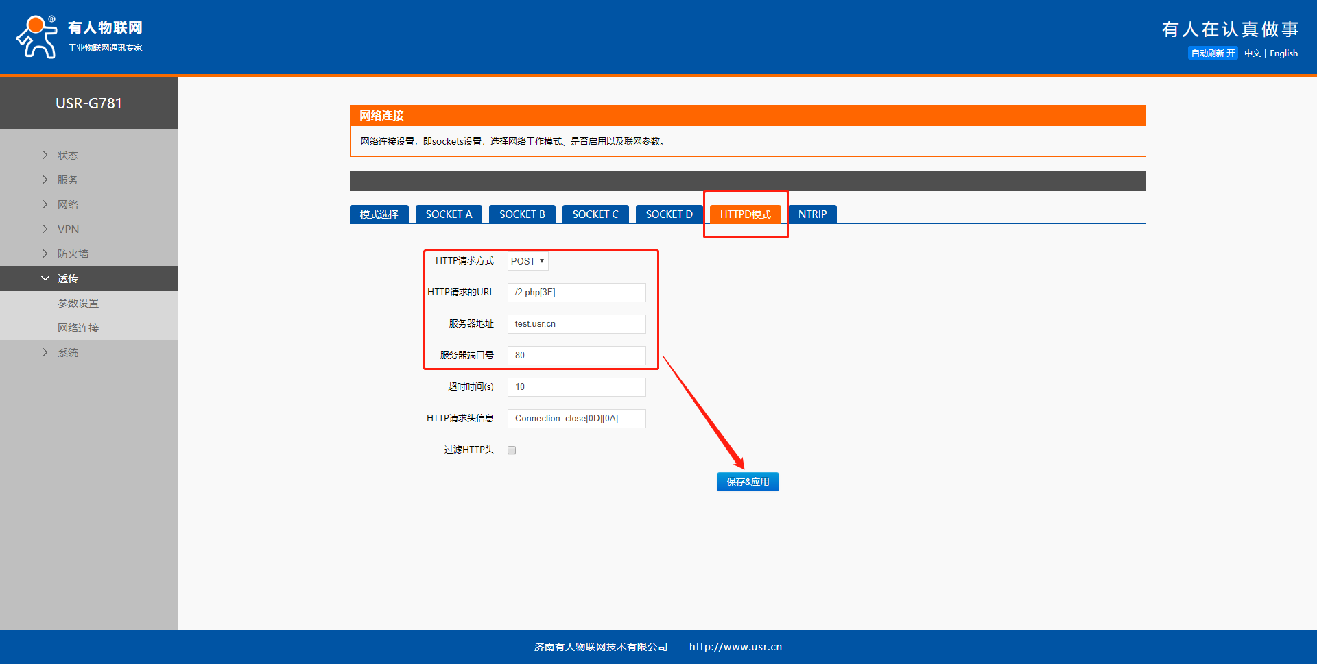 在内置网页--透传--网络连接--HTTPD模式中,过滤HTTP头。
