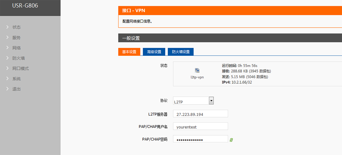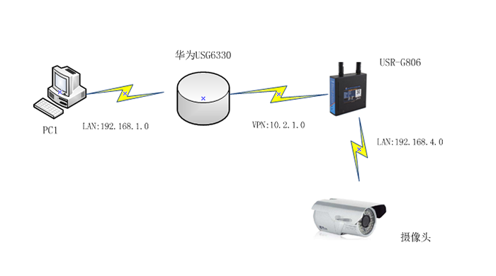 基于华为路由器搭建的VPN服务器,使用USR-G806拨VPN服务器,通过路由器下端的PC访问G806LAN口设备。