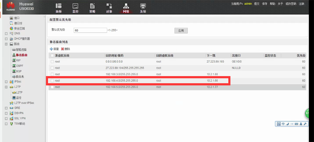 192.168.4.0/255.255.255.0 10.2.1.66 为手动添加的路由