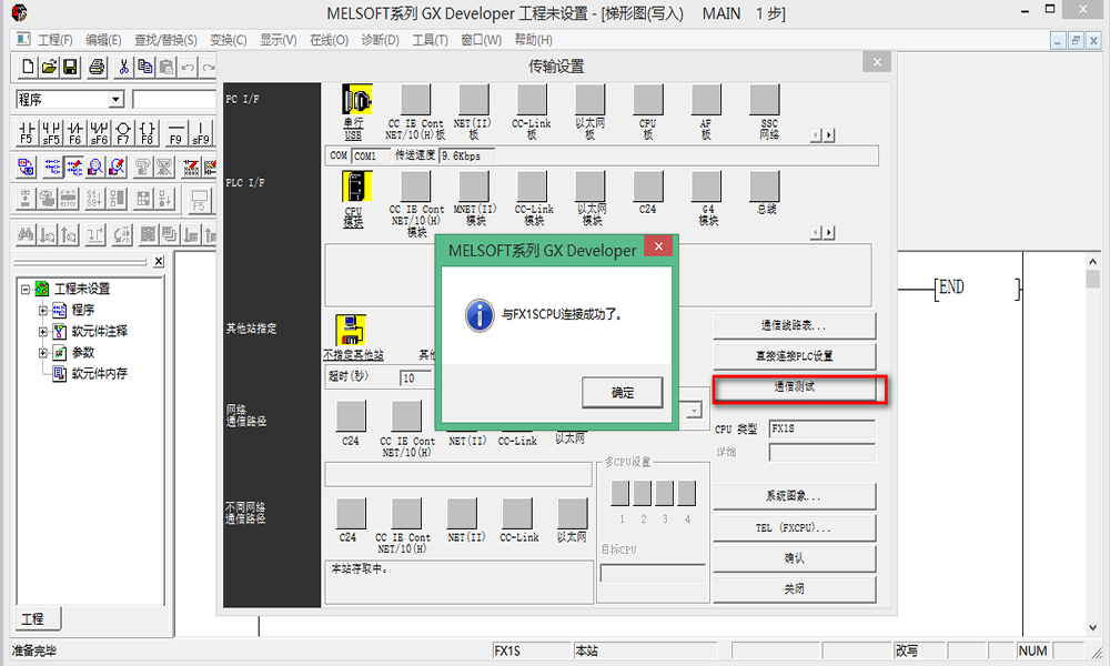 十一、点击“通信测试”,会显示与PLC连接成功,然后点击“确定”