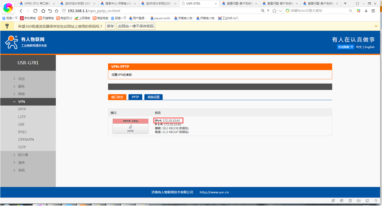连接方法:pc1---781----vpn服务器;pc2---vpn服务器