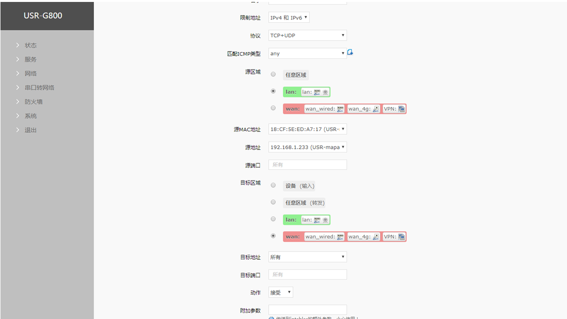 USR-G806 防火墙设置