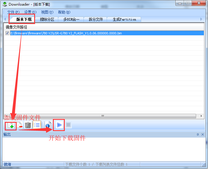 加载固件文件(如果先前有文件,先将先前的文件删除),然后开始下载固件