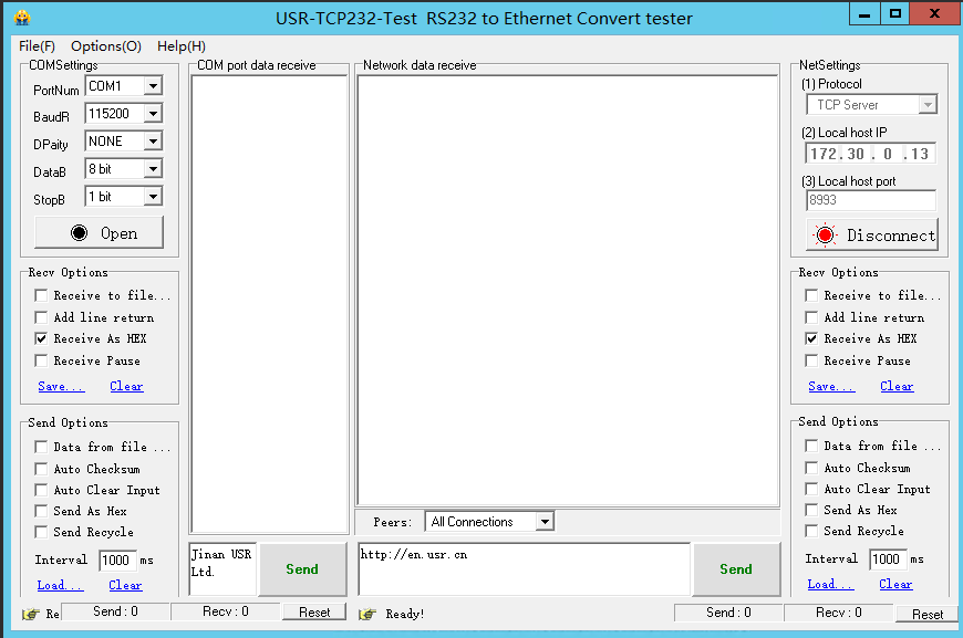 到现在整个案例都用用USB转232模拟的串口设备测试的,如果通过USB转232可以正常收发的话,那将USB转232/485串口线断开,接上真正的串口设备,肯定也是能够正常通讯的