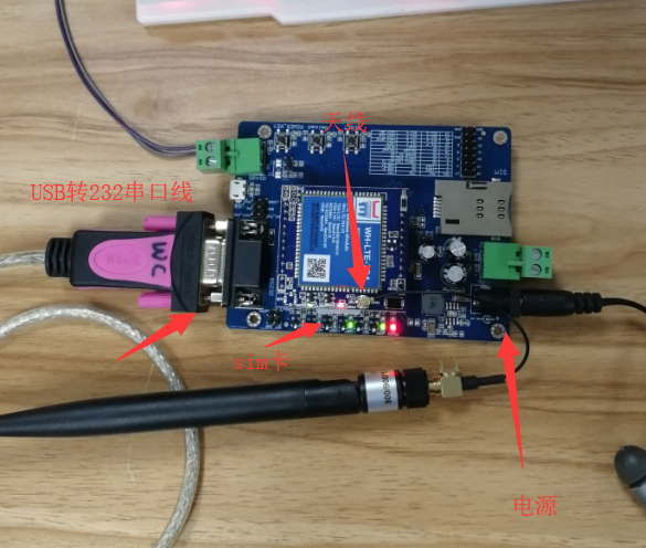 7S4 V2串口通过USB转232/485接到电脑端,装上sim卡,接上天线,上电。