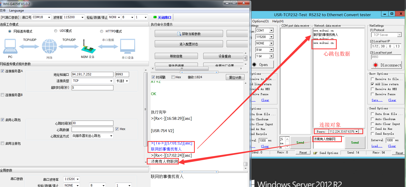 最终实现串口设备与服务器端的双向数据透传