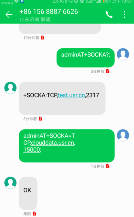 设置SOCKA的参数:adminAT+SOCKA=TCP,clouddata.usr.cn,15000;