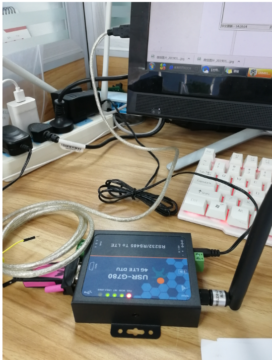 (1) 硬件连接:装上sim卡,接上天线,780 V2的串口通过UAB转RS232/485接到PC上,用我司提供的适配器供电。