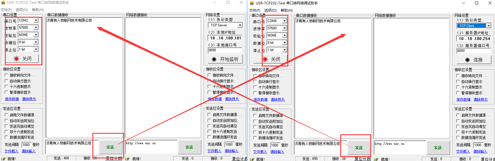 (1)第一种结果测试方法:打开有人串口转网络调试助手,参数配置如图