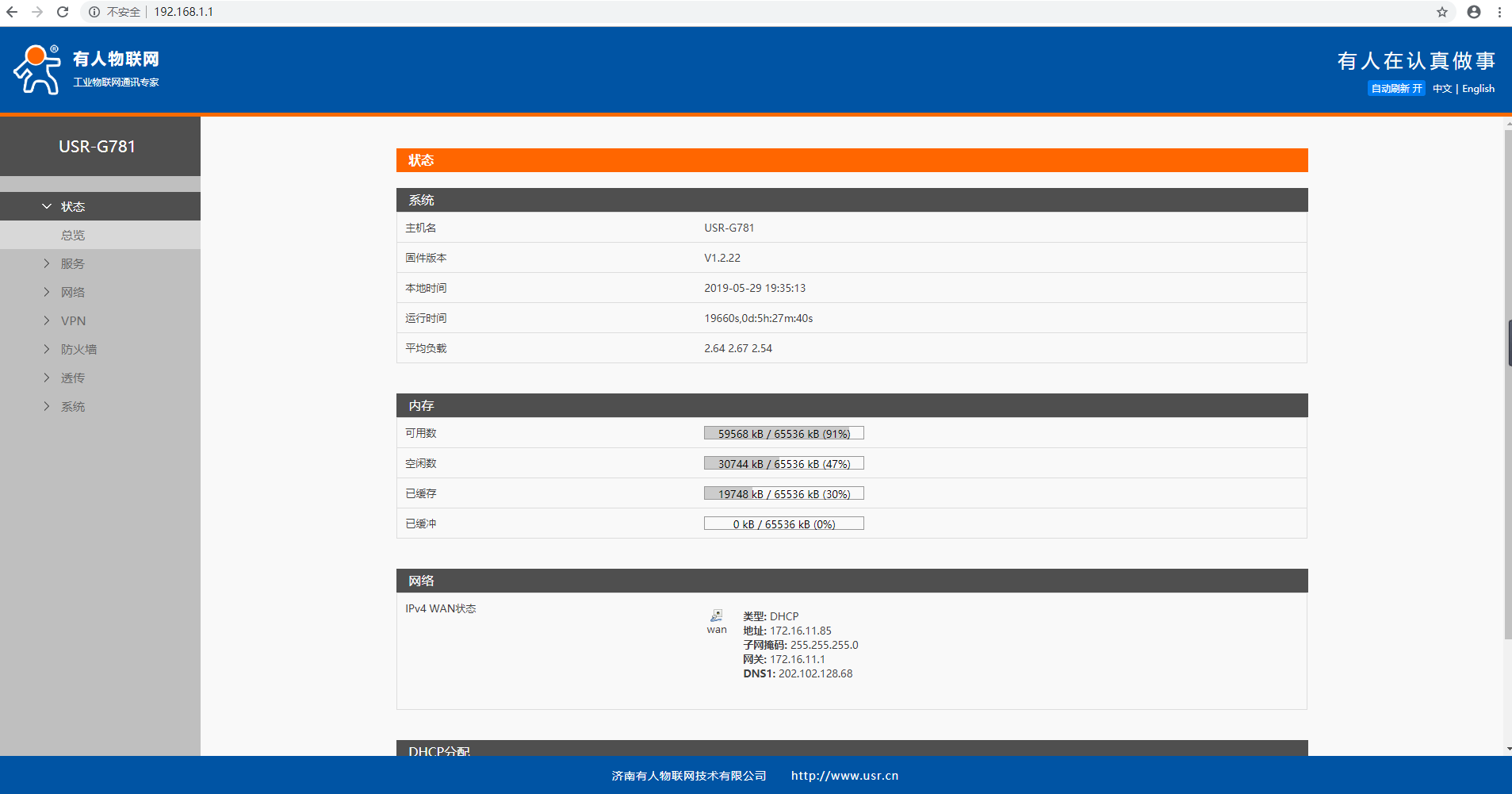 USR-G781 PC通过LAN口进入内置网页