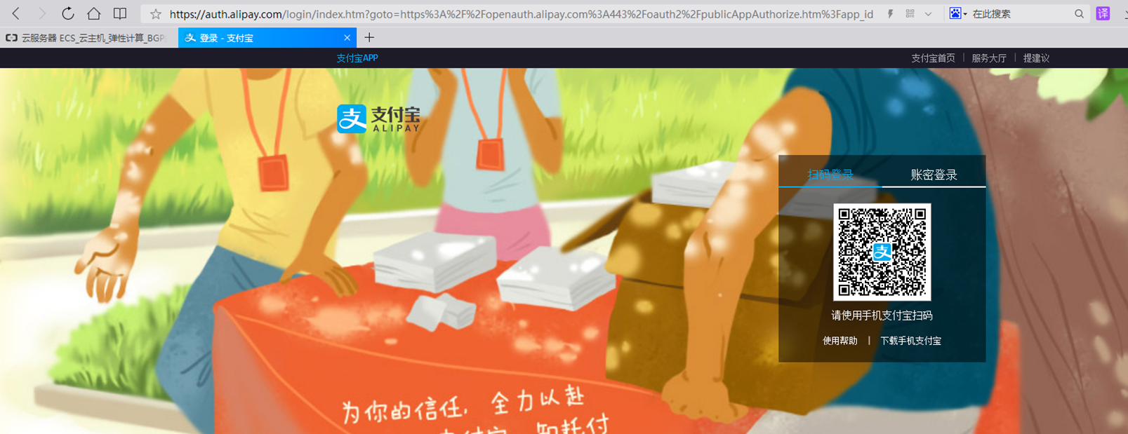 1、网页进入阿里云https://www.aliyun.com/ 点击登陆,根据个人习惯选择登陆方式,本案例使用支付宝。