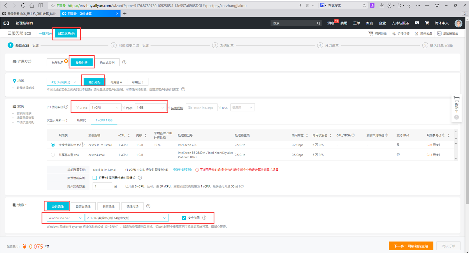 (4) 镜像:公共镜像 Windows Server 2012 R2 数据中心版 64位中文