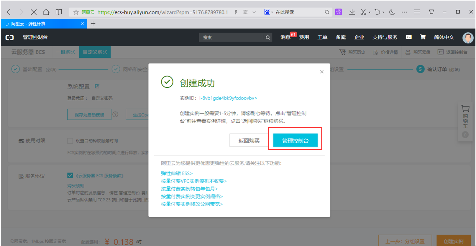 (2) 公网带宽:分配公网IPv4地址 按固定带宽(1M)