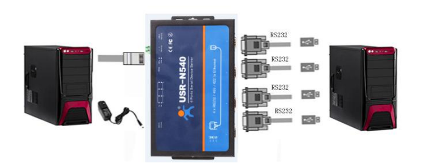 USR-TCP232-N540、虚拟串口软件USR-VCOM、设置软件USR-TCP232-M4-setup-V2.3.3.97、测试软件USR-TCP232-Test-V1.3、232转usb串口线一根*3、网线、标准电源适配器。