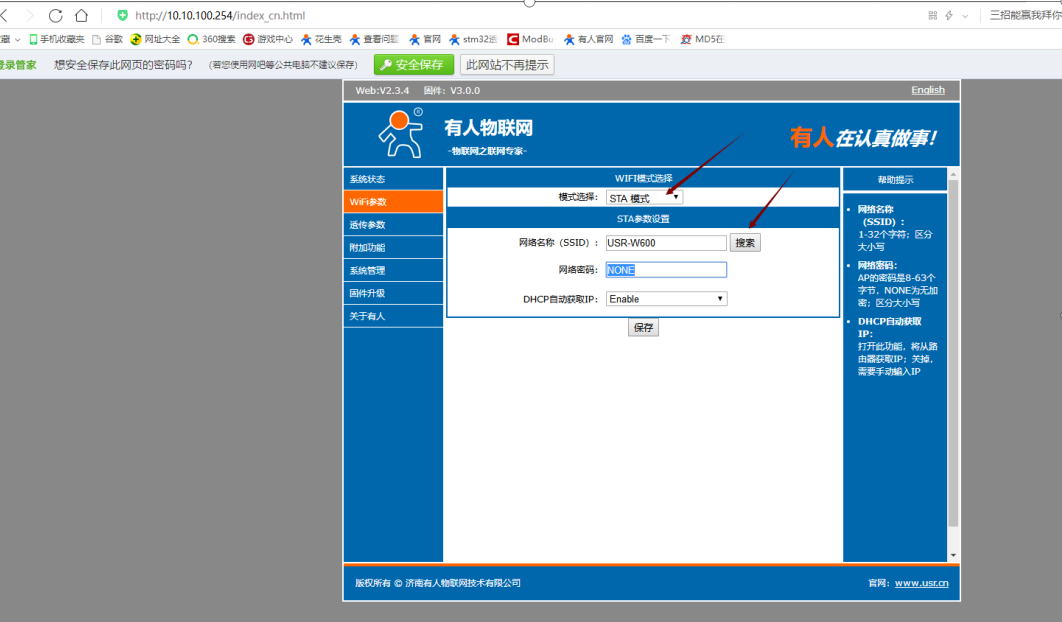 4. 模式选择: STA,搜索网络。 注:确定后,不用立刻重启,等着全部修改完成一块重启。