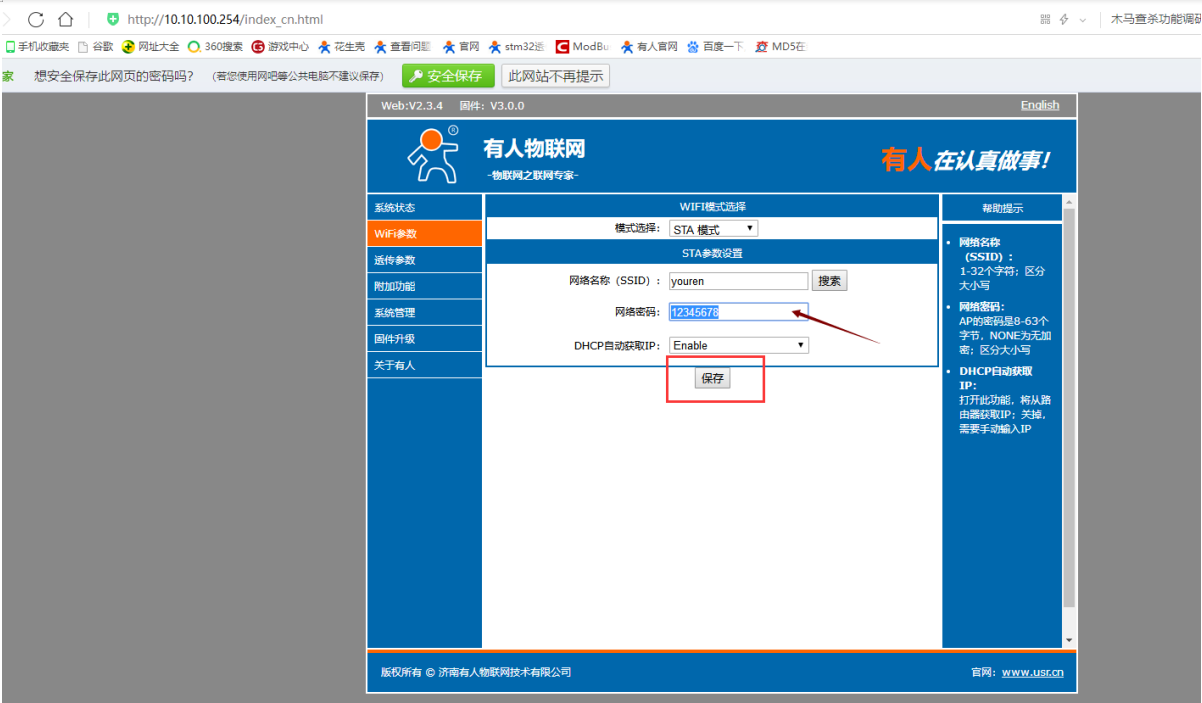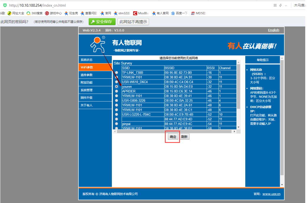 3. 用浏览器打开W600的IP地址(出厂默认10.10.100.254),用户名和密码均是admin