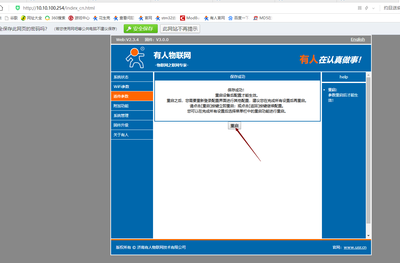 6. 模块管理:重启模块,使配置的参数生效。其他选项在本案例中也不做设置。